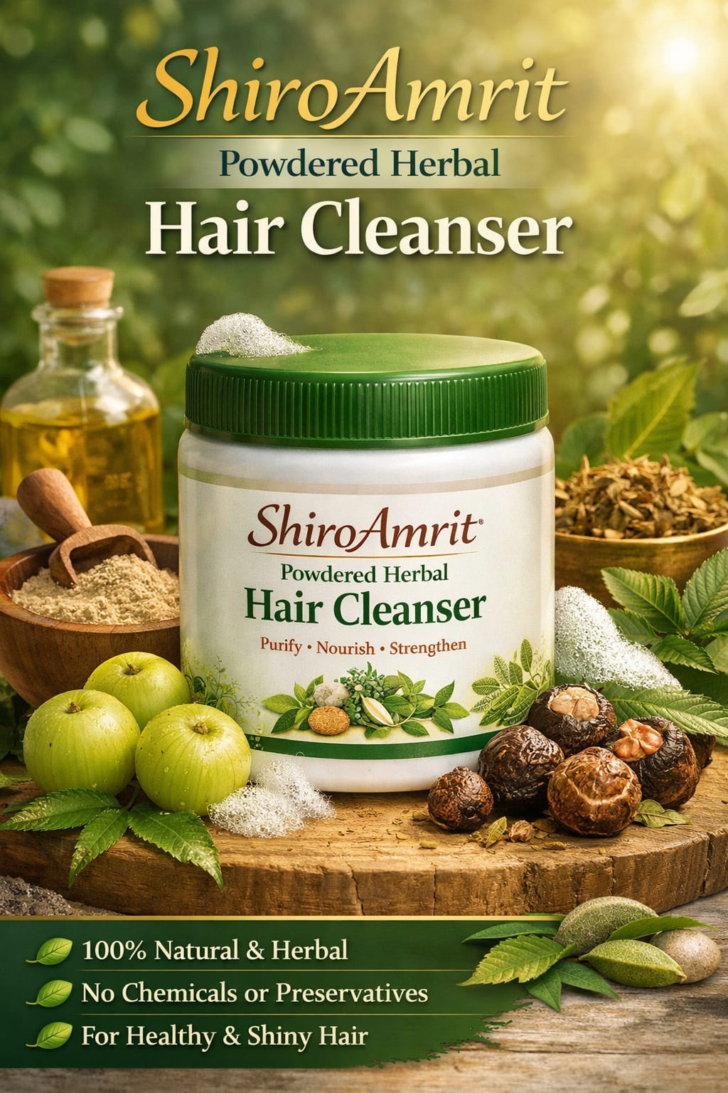 A powerful blend of traditional Ayurvedic cleansing herbs, each selected for its unique hair care benefits.