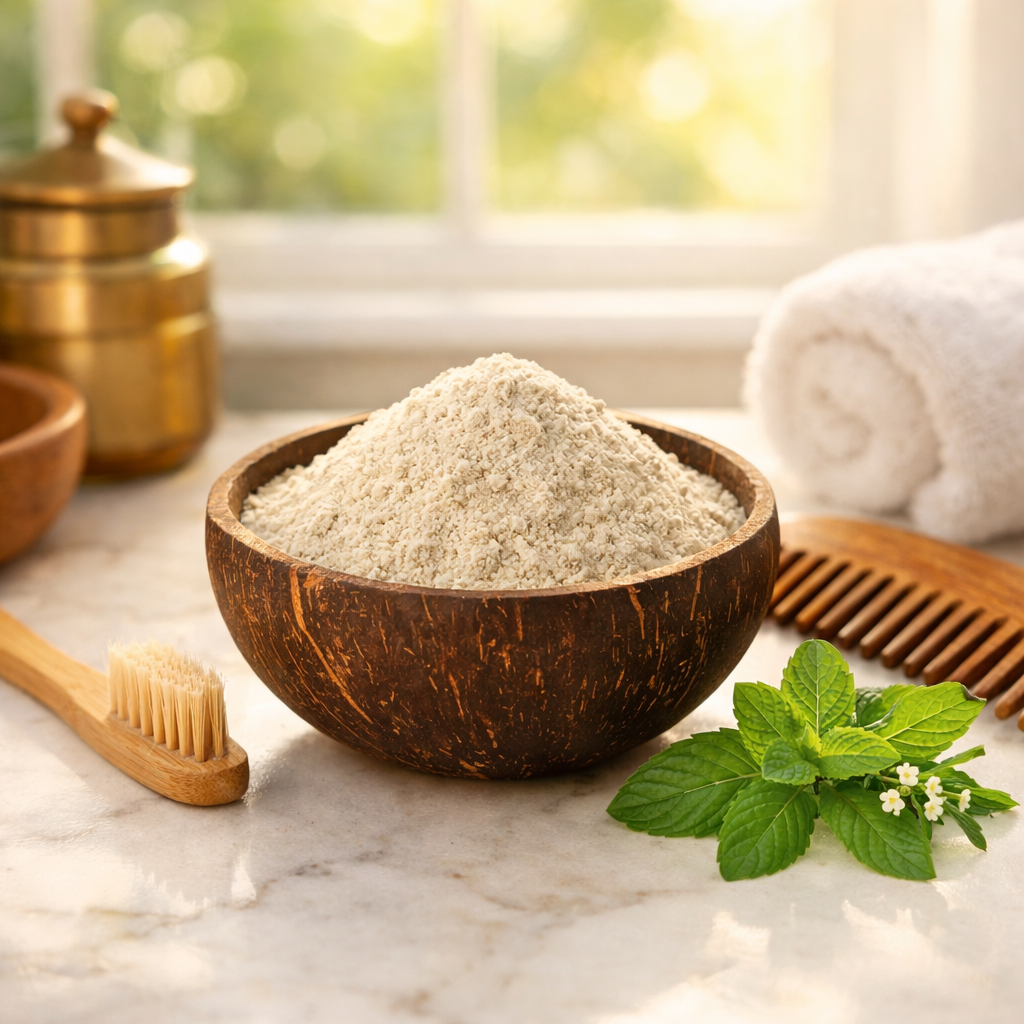 A traditional Ayurvedic cleanser that washes without stripping. Made with a powerhouse of 19 herbs including Reetha, Shikakai, and Amla, this raw herbal powder removes dirt and excess oil while keeping your scalp's natural moisture barrier intact. It's the shampoo, redefined.