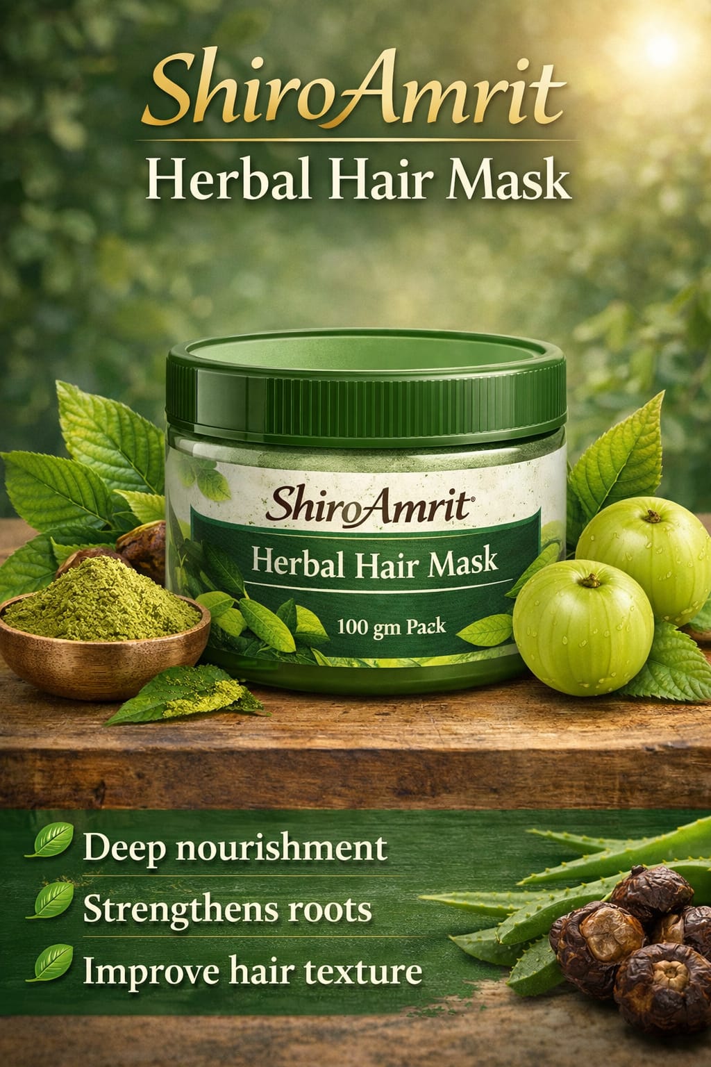 Experience the nourishing care of traditional herbal hair therapy with ShiroAmrit Herbal Hair Mask. Crafted with natural ingredients, this mask helps deeply condition the hair, support scalp health, and restore softness and vitality when used as part of your regular hair care ritual.
